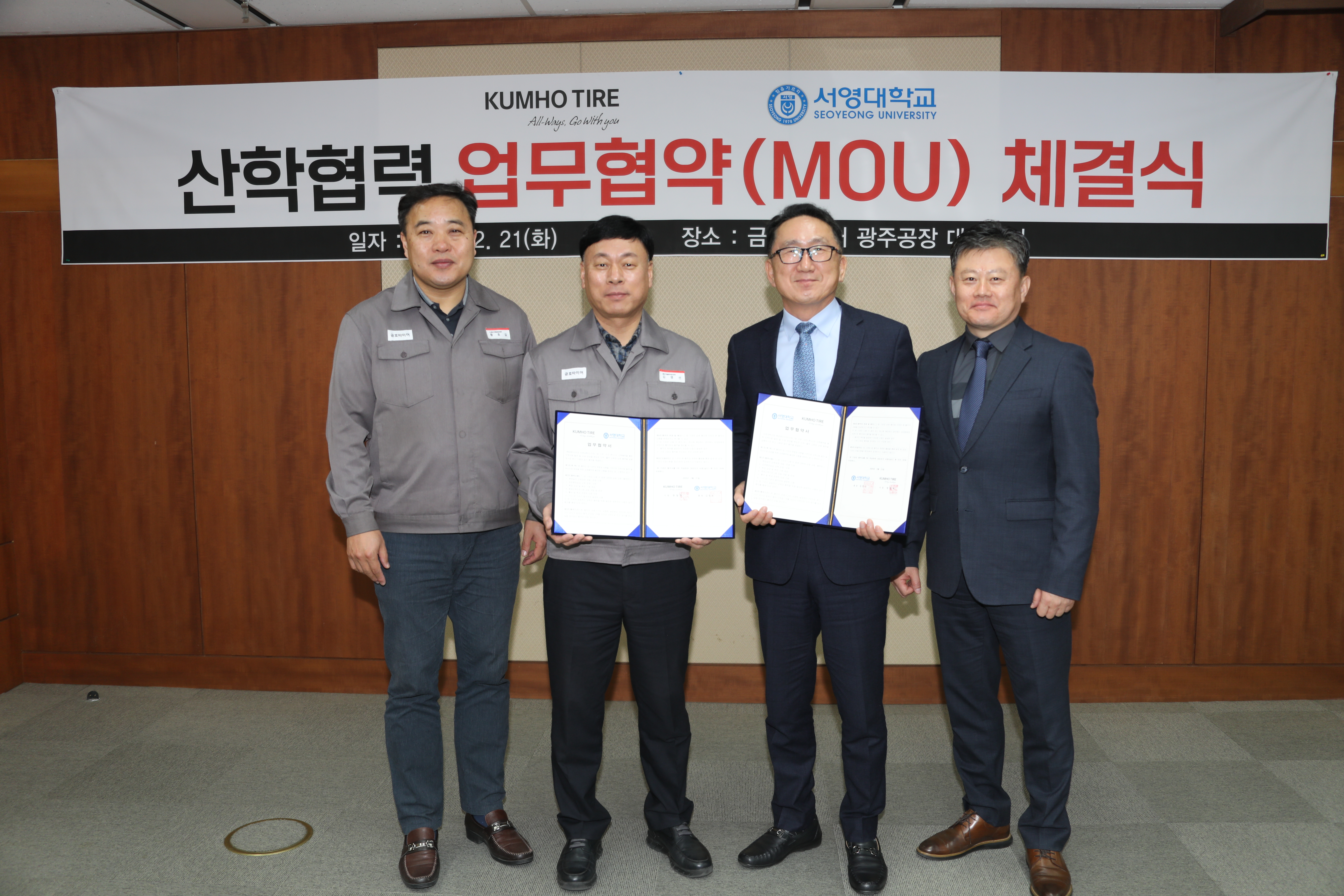 ○ 서영대학교가 21일 금호타이어 광주공장에서 타이어 산업 전문 우수인재 양성 및 맞춤형 인재 연계 취업 등을 위해 금호타이어와 산학협력 업무협약을 체결했다.