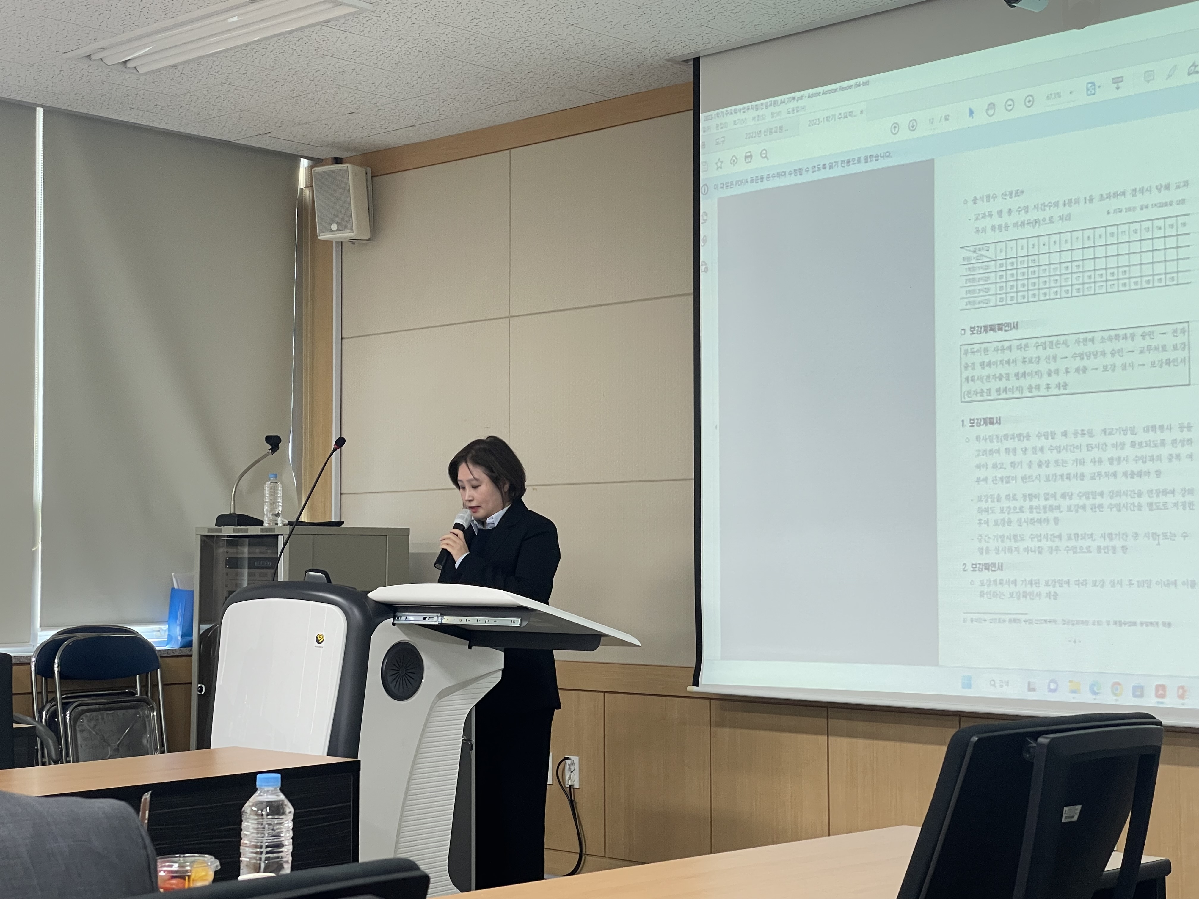 O. 우리대학(총장 김정수)은 3월 24일(금) 신임교원의 직무능력 향상을 위한 직무교육을 실시하였다. 서정관 1층 회의실에서 진행된 신임교원 직무교육은 부총장 김순곤, 입학홍보처장 장철인, 교무처장 임창주, 학생취업처장 김명재 이하 각 부처별 실무담당자 4인과 미래자동차과 김진태교수 외 신임교원 6인이 참석하였다.