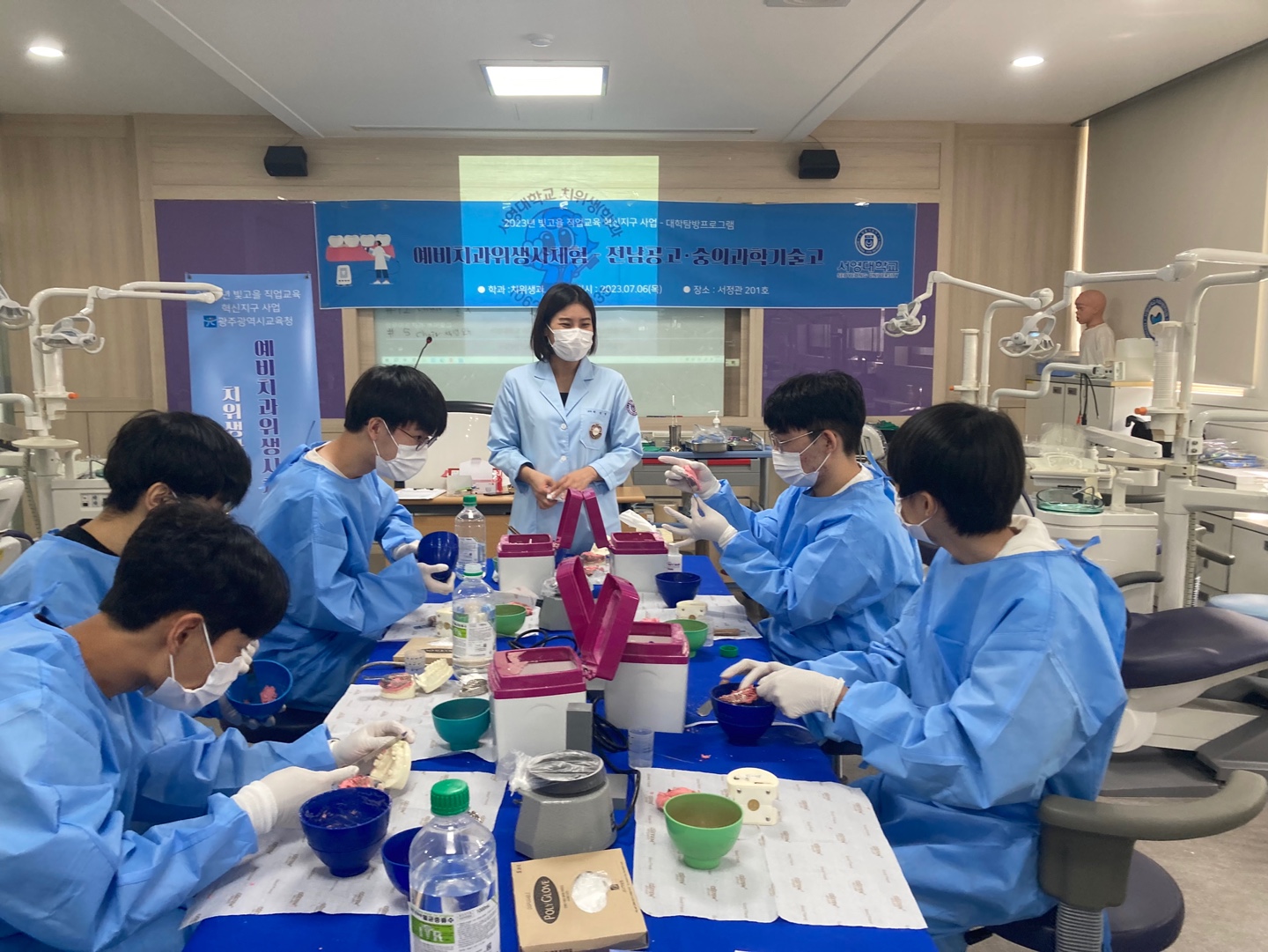 ○ 우리대학이 광주광역시와 광주시교육청이 주관하는 ‘2023년 빛고을 직업교육 혁신지구 사업’의 일환으로 전남공고에 재학 중인 취업동아리 학생들을 대상으로 예비치과위생사 체험교육을 실시했다고 10일 밝혔다.
