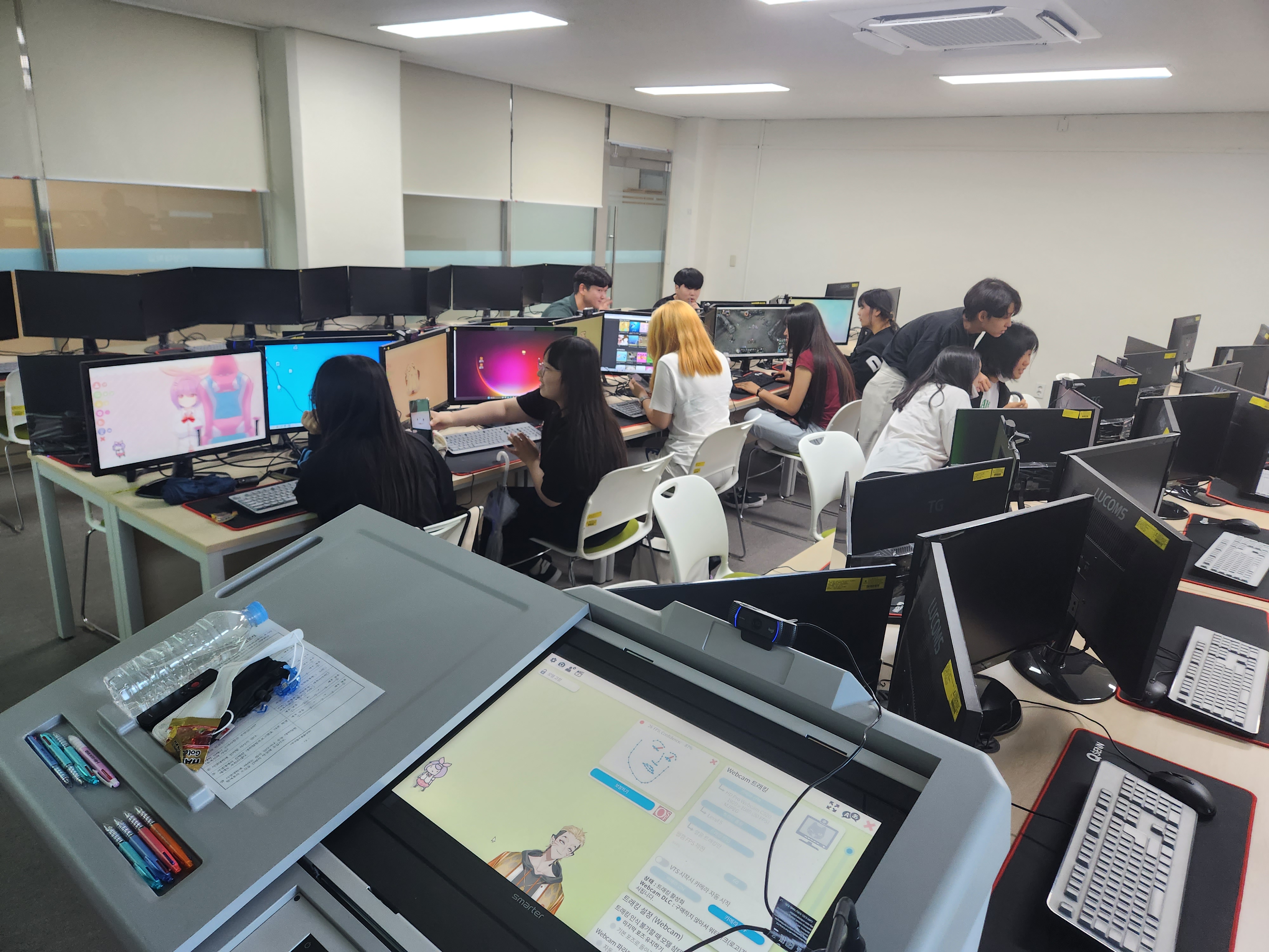 ○ 우리대학 e-크리에이터과가 광주시와 광주시교육청이 주관하는 ‘2023년 빛고을 직업교육 혁신지구 사업’의 일환으로 광주전자공업고등학교와 숭의과학기술고등학교에 재학 중인 취업동아리 학생 31명을 대상으로 ‘버츄얼 스트리머 체험교육’을 교내 e-크리에이터과 실습실에서 실시했다.