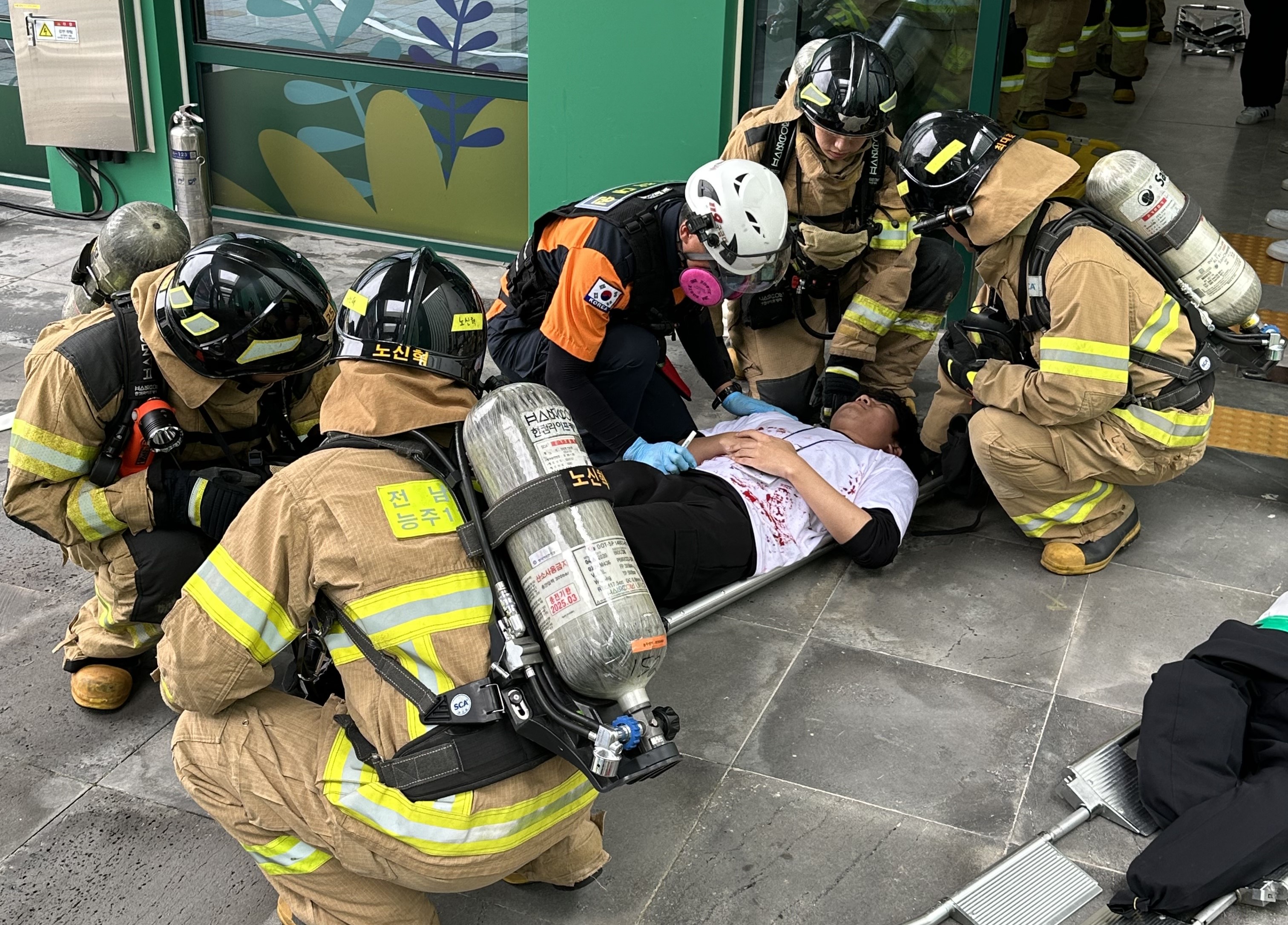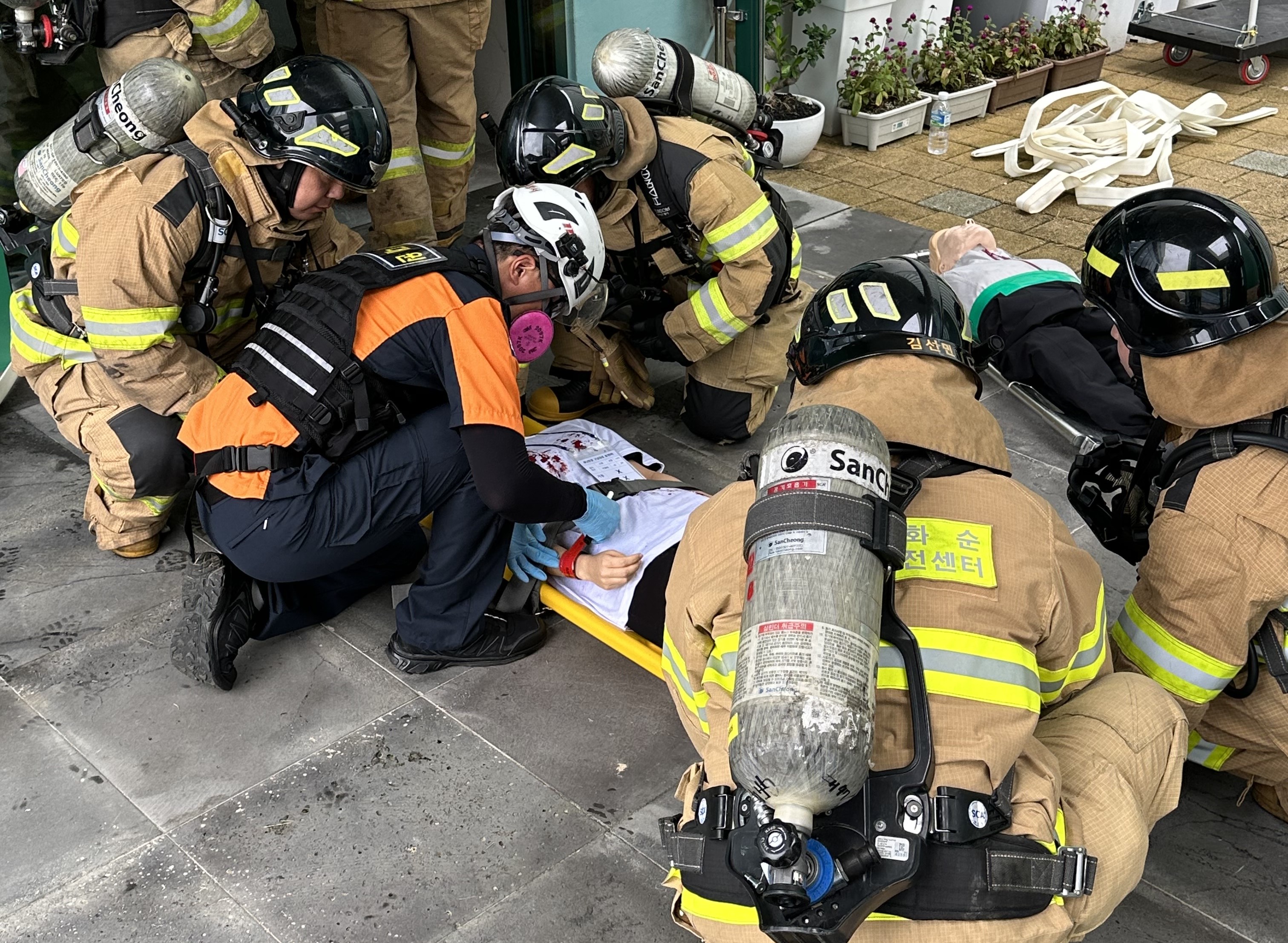 ○ 특히 재난발생 시 현장대응능력을 강화하기 위해 119구급대원(응급구조사)들은 기본 역할부터 중증도에 따른 환자분류, 응급처치 및 병원이송에 이르기까지 실제 상황을 가정해 훈련에 임했다.