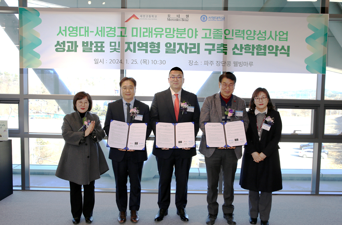 O. 우리대학(총장 김정수)은 1월25일(금) 주식회사 모터원(대표이사 손영호), 세경고등학교(교장 장계홍)와 「미래유망분야 고졸인력 양성사업」 관련 지역형 일자리 구축 및 산학협력을 통한 지역 우수 고졸인력 양성을 위한 업무협약을 체결하였다.