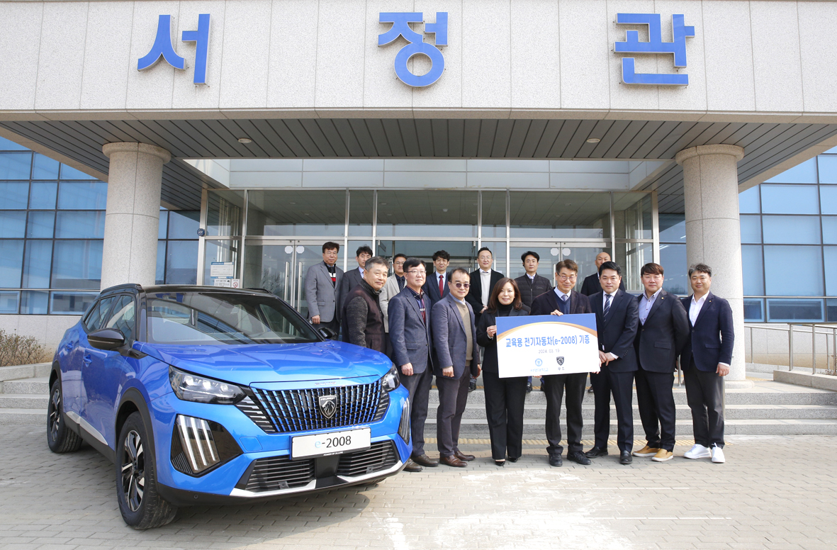 O. 주식회사 스텔란티스코리아(대표이사 방실)는 금일 행사에서 푸조 24년식 e-2008 SUV 전기자동차를 우리대학 미래자동차과에 기증하였다. 푸조 e-2008 SUV는 국내 최초 전기 모빌리티 교육용 교보재이다. 기증받은 전기자동차는 앞으로 미래자동차과 재학생 및 자동차계열 특성화고 재학생과 직업훈련 기관 교육을 비롯하여 지역사회 산업체 재직자 교육에도 적극 활용 할 예정이다.