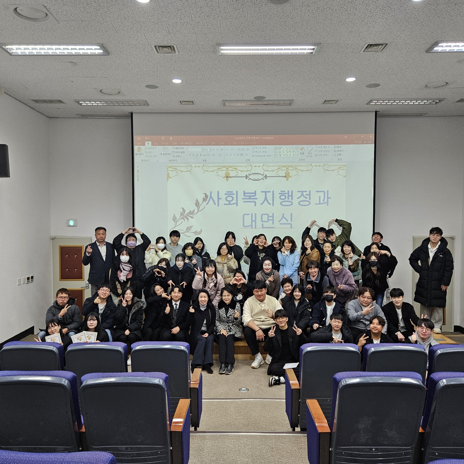 O. 우리대학(총장 김정수) 사회복지행정과(학과장 김효선)는 학생들의 적응을 돕고 학교생활에 대한 다양한 정보를 공유하며 친목을 도모하는 1, 2학년 재학생들의 대면식을 진행하였다. 금일 행사에는 사회복지행정과 학과장 김효선 교수 외 교강사와 주간반 1, 2학년 재학생 60명이 참석하였다.