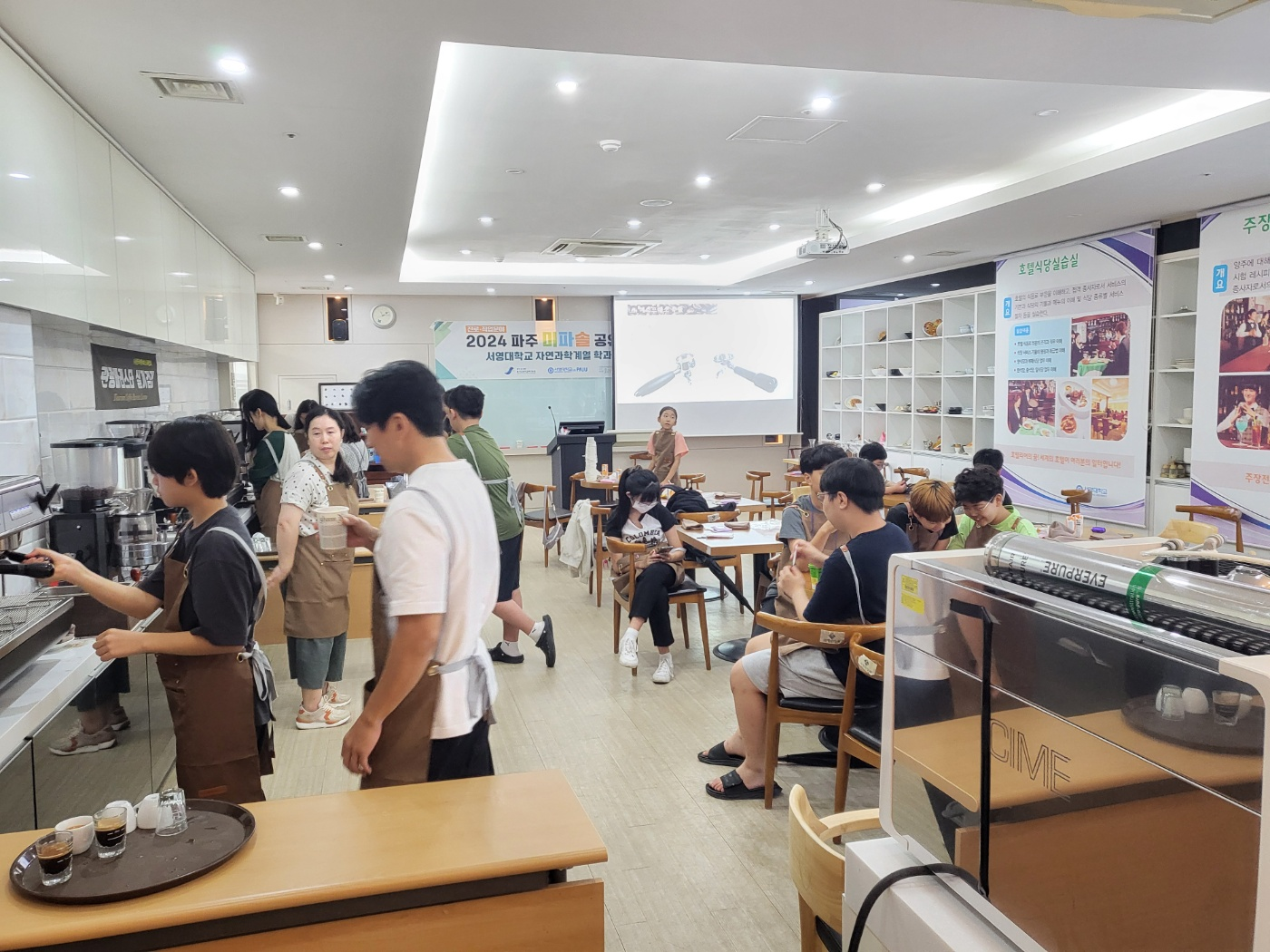 O. 우리대학(총장 김정수) 항공국제관광과(학과장 곽영대)는 '2024학년도 파주미파솔 공유학교 학과체험프로그램 커피바리스타 2급 자격증 체험반'을 개설하여 운영하였다. 서정관 호텔F&B(식음료)실습실에서 진행된 커피바리스타 2급 자격증 체험은 2024년 9월 21일 9시 30분부터 12시 40분까지 20명의 초중고학생들이 참여하였다.