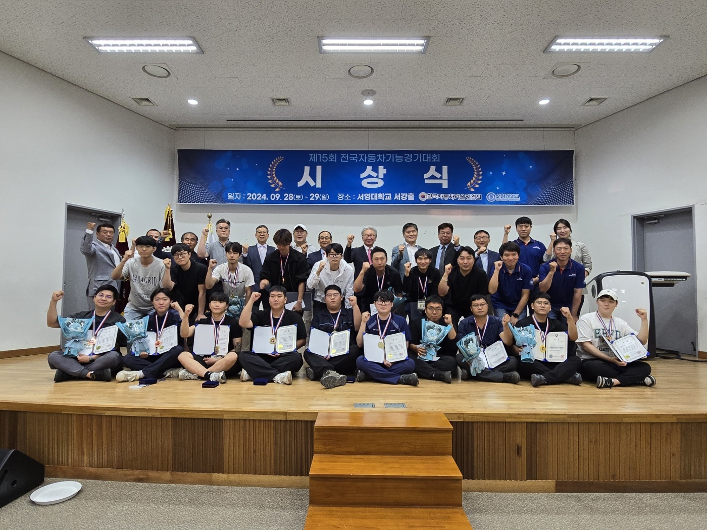 ○ 서영대학교 파주캠퍼스(총장 김정수)는 지난 9월 28~29일 양일간 ‘제15회 전국자동차기능경기대회’를 개최하였다. 서영대학교 파주캠퍼스에서 진행된 ‘제15회 전국자동차기능경기대회’는 전국 규모의 민간기능경기대회로 (사)한국자동차기술인협회(이하, 한차협)와 공동으로 주관하여 진행하였다. ○ 전국자동차기능경기대회는 교육기관과 산업체의 연계를 통하여 청년들의 취업과 창업 및 일자리창출을 도모하는 것을 목적으로 하는 대회이다. 한차협은 전국자동차기능경기대회를 자동차산업 발전에 꼭 필요한 기술인을 육성하기 위하여 전국 자동차정비인, 특히 고등학생을 대상으로 하는 유일한 민간기능경기대회를 매년 한국직업능력평가원과 공동으로 주최하고 있다. ○ 한차협은 그동안 매년 킨텍스 전시장에서 오토살롱위크 기간에 대회경기장을 꾸며 대회를 개최하였으나 2024년 경기대회는 서영대학교와 한차협이 공동주관하여 더욱 우수한 자동차 실습시설과 교원 인력풀을 갖춘 교육기관에서 우수한 인재육성을 하고자 서영대학교 파주캠퍼스에서 진행하였다. 또한 한차협에서는 산․학․관 협동차원에서 국토교통부장관상 2점과 고용노동부장관상 2점, 국제기능올림픽대회 한국위원회장상과 직능경제인단체총연합회 총회장상, 서영대학교 총장상 등을 수여하면서 많은 인재들에게 격려의 선물을 준비하였다. ○ 자동차정비부문 일반부 대상은 김동휘(2기갑여단 29전차대대)氏가 국토교통부장관상을 학생부 대상은 김0호(동아공업고등학교)君이 고용노동부장관상을 수상했으며, 자동차차체수리부문 일반부 대상은 김0주(태안모터스)氏가 국토교통부장관상을 학생부 대상은 이0교(신진과학기술고등학교)君이 고용노동부장관상을 각각 수상했다. 자동차기술인을 격려하고자 우수 입상자에게 윤후덕(경기 파주시갑) 국회의원과 박정(경기 파주시을) 국회의원 특별상도 각각 2점씩 수여되었다. 아울러 전국자동차기능경기대회가 공정한 심사를 통하여 대회가 성공적으로 개최될 수 있도록 기여한 감독위원 2명에게는 김경일 파주시장표창과 박대성 파주시의회 의장표창이, 성공적인 대회 운영을 위해 정비장비 지원을 해 준 파주현대상용서비스(주) 대표에게는 김정수 서영대학교 총장표창을 수여하였다. ○ 이날 행사를 주관한 봉필준 서영대학교 산학협력단 부단장은 ‘우리 서영대학교에서는 자동차산업 발전에 조금이라도 이바지 하고자 미래자동차과의 훌륭한 시설과 30여명이 넘는 내, 외 교원들의 협조로 이번 전국대회를 성공리에 운영할 수 있었으며, 대회 기간 중 파주시 지역사회 홍보에도 작게나마 기여할 수 있었다. 이번 대회 기간 중 우리대학 직원들의 헌신적인 협조와 미래자동차과 자원봉사 학생들의 도움이 무엇보다 큰 힘이 되었다.’라고 소감을 말하였다.