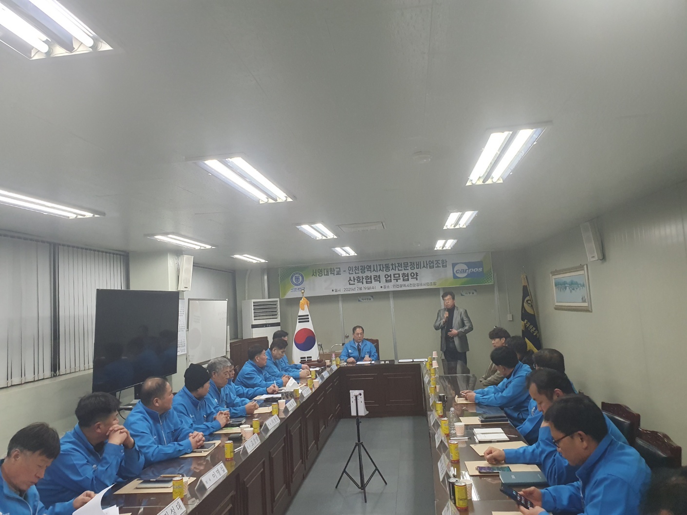 O. 우리대학(총장 김정수)은 2월12일(수) 인천광역시 자동차전문정비사업조합(이사장 최성남)과 자동차 신산업 공동 발전 및 조합원 미래 평생 교육 참여 강화 등을 위한 업무협약을 체결하였다. 인천광역시 조합 회의실에서 진행된 협약식은 서영대학교 산학협력단 부단장 봉필준, 미래자동차과 학과장 송락현, 김진태교수 외 서영대학교 관계자와 인천광역시 자동차전문정비사업조합 최성남 이사장 및 지회장 외 관계자 20명이 참석하였다.