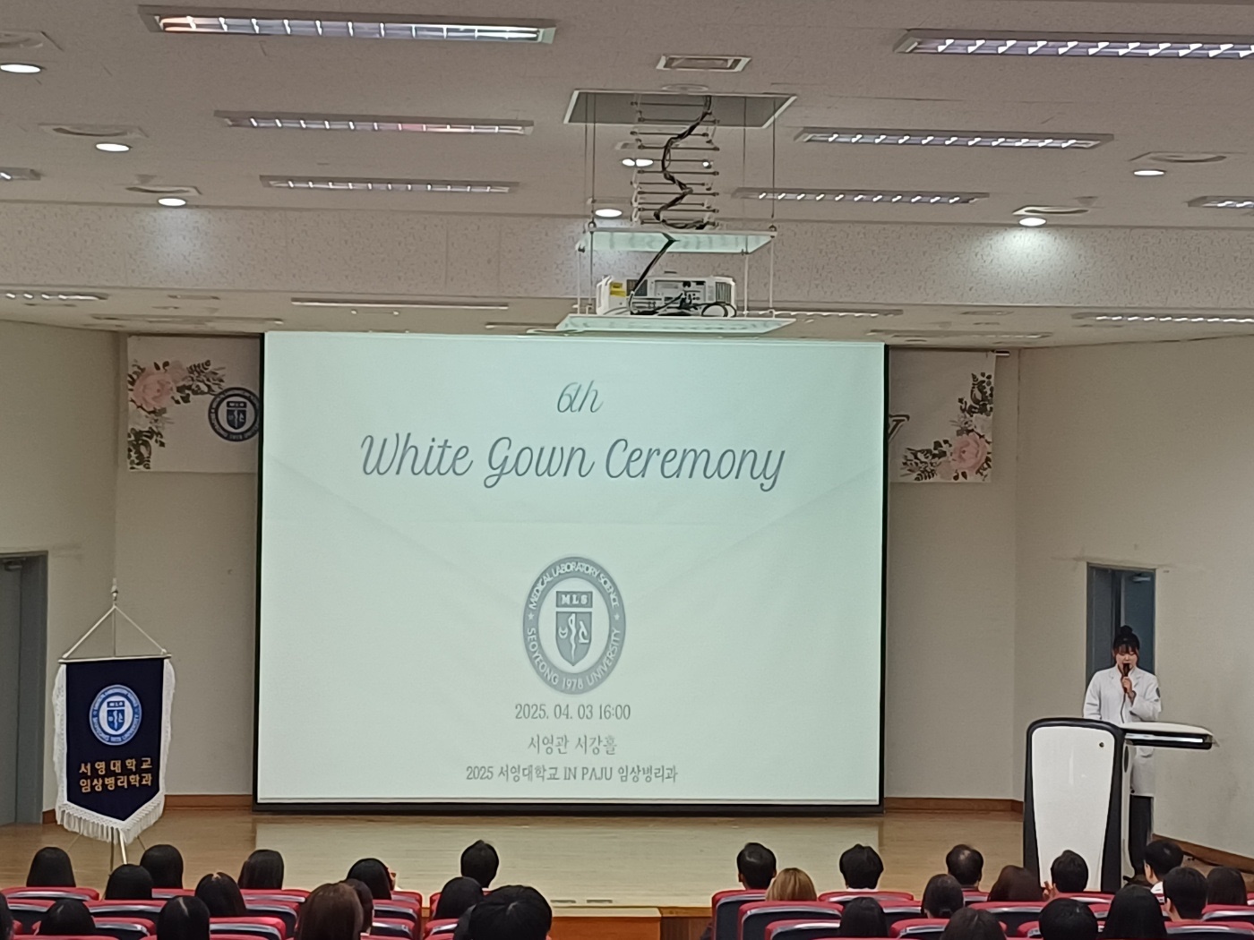 O. 우리대학(총장 김정수) 임상병리학과는 4월 3일(목) 제6회 "White Gown Ceremony"를 개최하였다. 서영관 서강홀에서 진행된 "White Gown Ceremony"행사에는 서영대학교 장철인 입학홍보처장, 이지웅 학과장 외 임상병리과 교수를 비롯하여 인천광역시 임상병리사회 채희영 회장과 재학생들이 참석하였다.