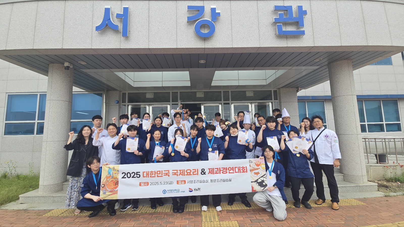 ○ 우리 대학(총장 김정수) 조리제과제빵과는 '2025 대한민국국제요리&제과경연대회'에서 대상(서울특별시장상), 금상, 은상, 동상을 대거 수상하는 쾌거를 거두었다. '2025 대한민국국제요리&제과경연대회'는 한국 음식문화 및 외식산업 향상을 위하여 5월 23일부터 25일까지 3일간 양재동 aT센터에서 개최하였다. 우리 대학은 심사위원 3인을 대회 본부에서 파견받아 학과에서 자체적으로 대회를 실시하였다.