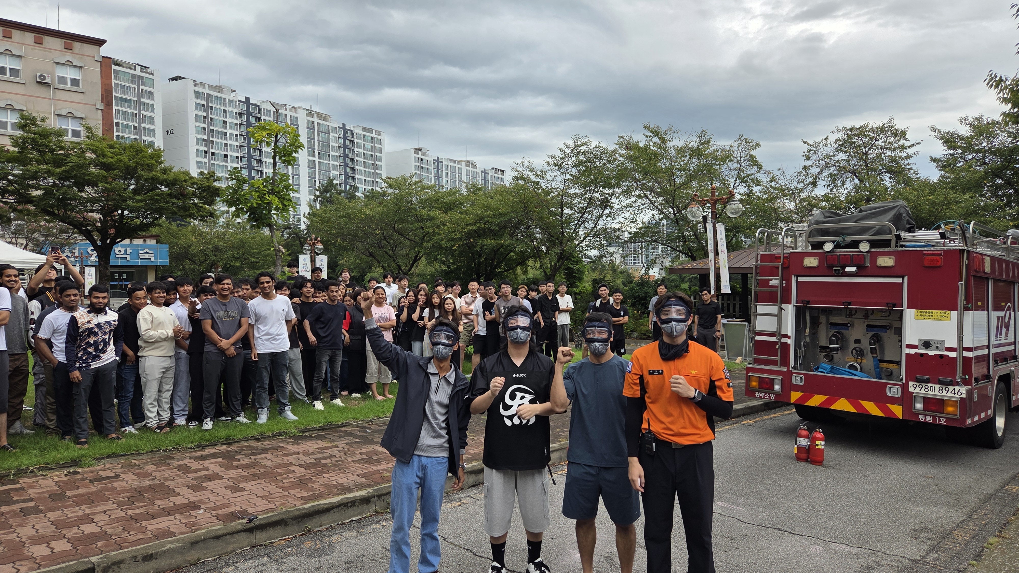 이번 훈련은 교내 기숙사에 거주하는 국내 재학생과 외국인 유학생이 함께 참여했으며, 소방대원의 소방안전교육, 기숙사 대피훈련, 방연마스크 착용 실습, 소화기 사용 실습 등으로 진행됐다.