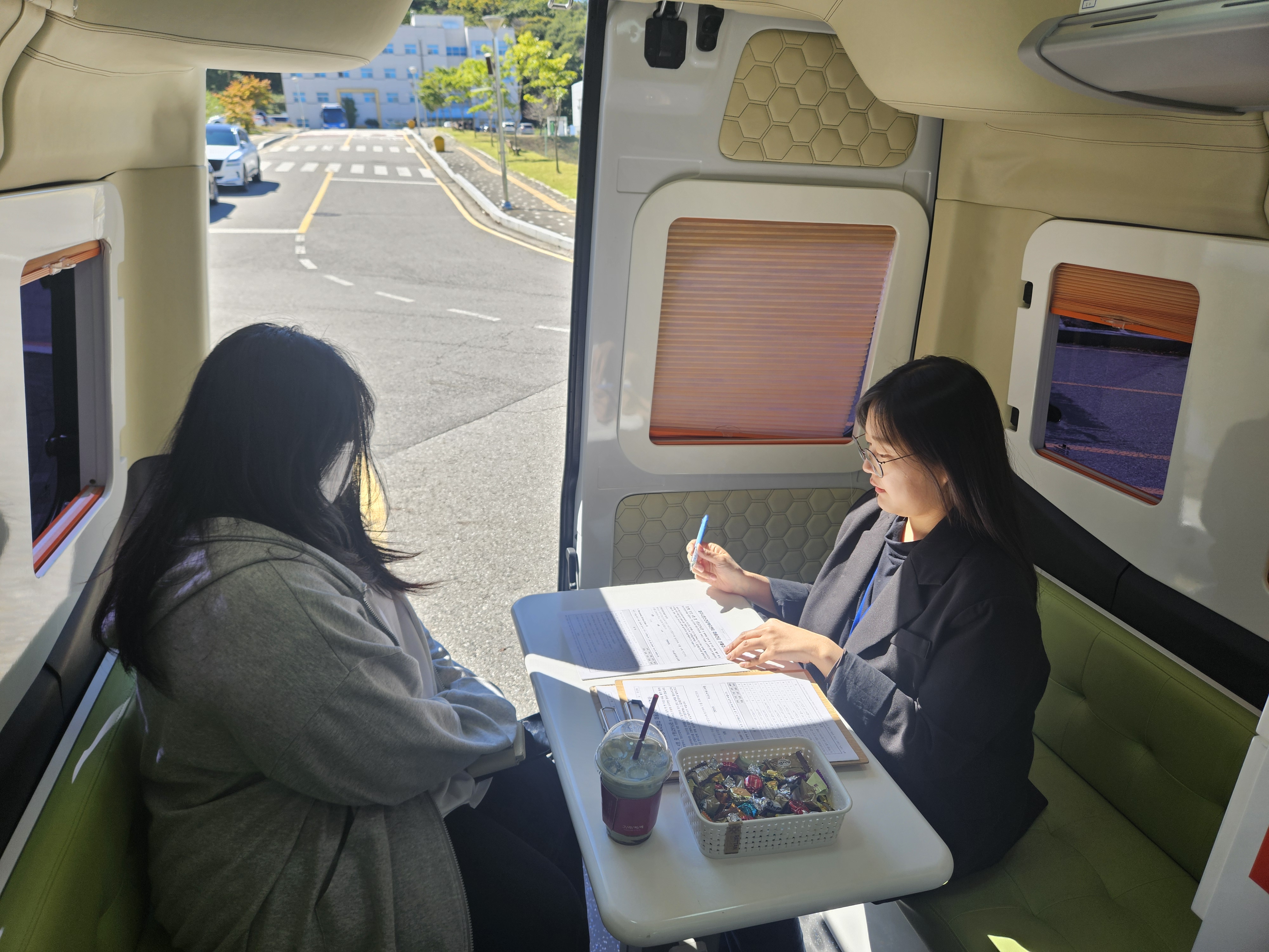 O. 우리대학(총장 김정수) 인권상담센터(부센터장 오민정)는 파주시정신건강복지센터와 업무협의를 통해 '청년 정신건강증진을 위한 2030 파주마음동행 마음안심버스 사업'을 진행하였다. 9월 10일(수)에 진행된 '2030 파주마음동행 마음안심버스' 사업에는 오민정 인권상담센터 부센터장, 강성민 인권상담센터 상담사, 김미정 사회복지사, 이지혜 사회복지사, 배지영 사회복지사 등 총 5명이 참석하였다.