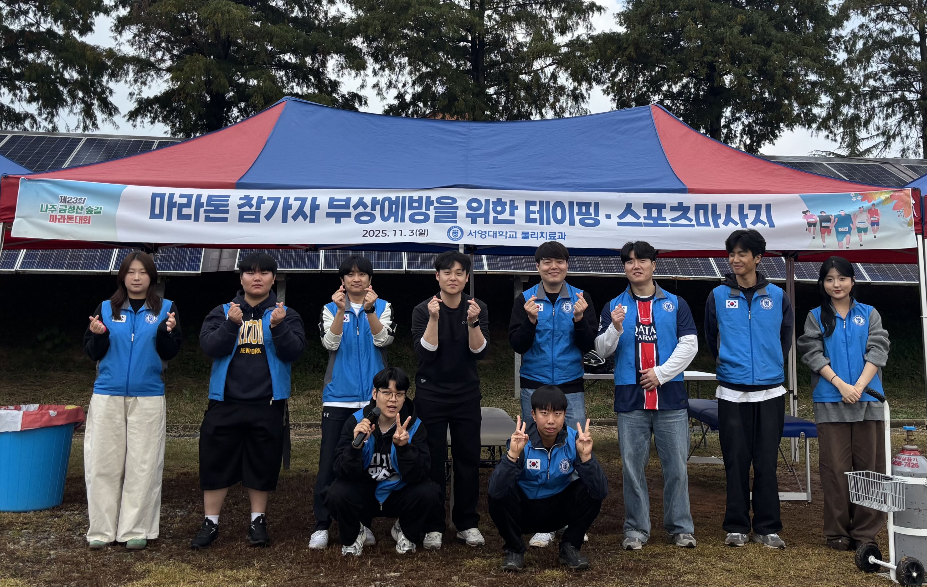 ○ 송요한 서영대 물리치료과 학과장은 "학생들이 실제 스포츠 현장에서 테이핑과 마사지 기법을 적용하며 경기 진행 과정에서 필요한 역할을 수행했다"며 "앞으로도 지역 행사와 연계한 현장 중심 교육을 확대해 실무 능력과 대응 역량을 강화하겠다"고 전했다.